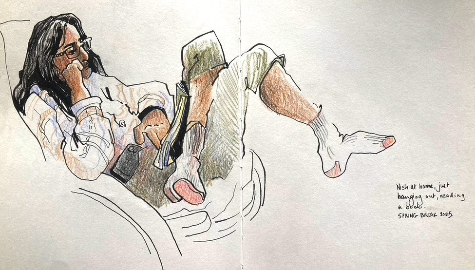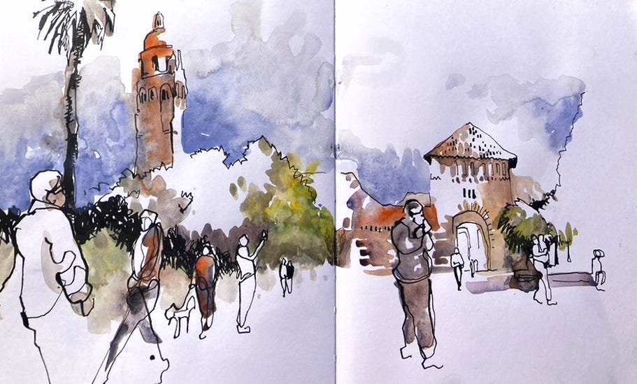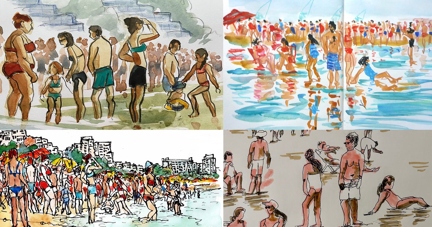 Last month, the Sketching Together group (the paid tier of this substack) sketched people at the beach. Here are some of the lovely pieces made by participants in that session.